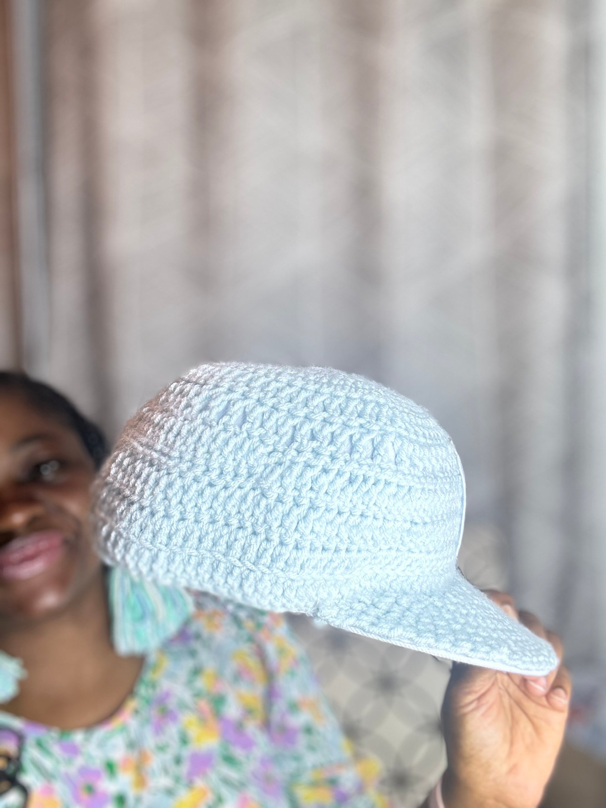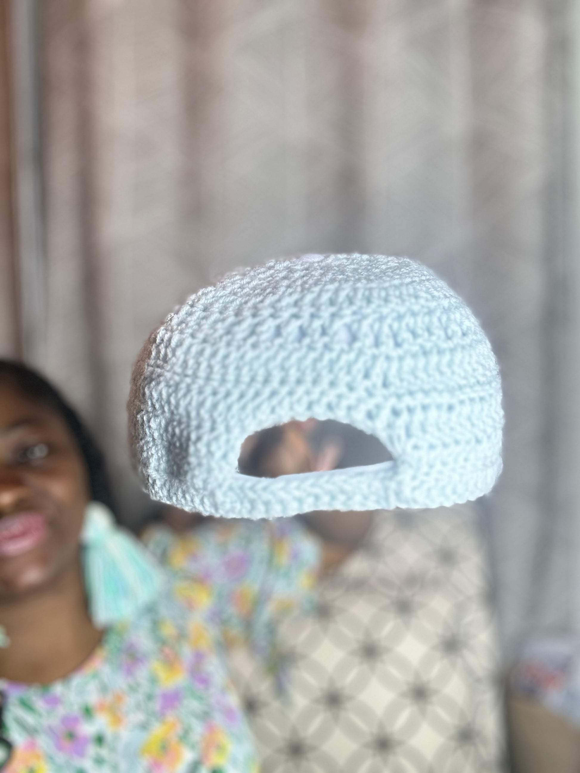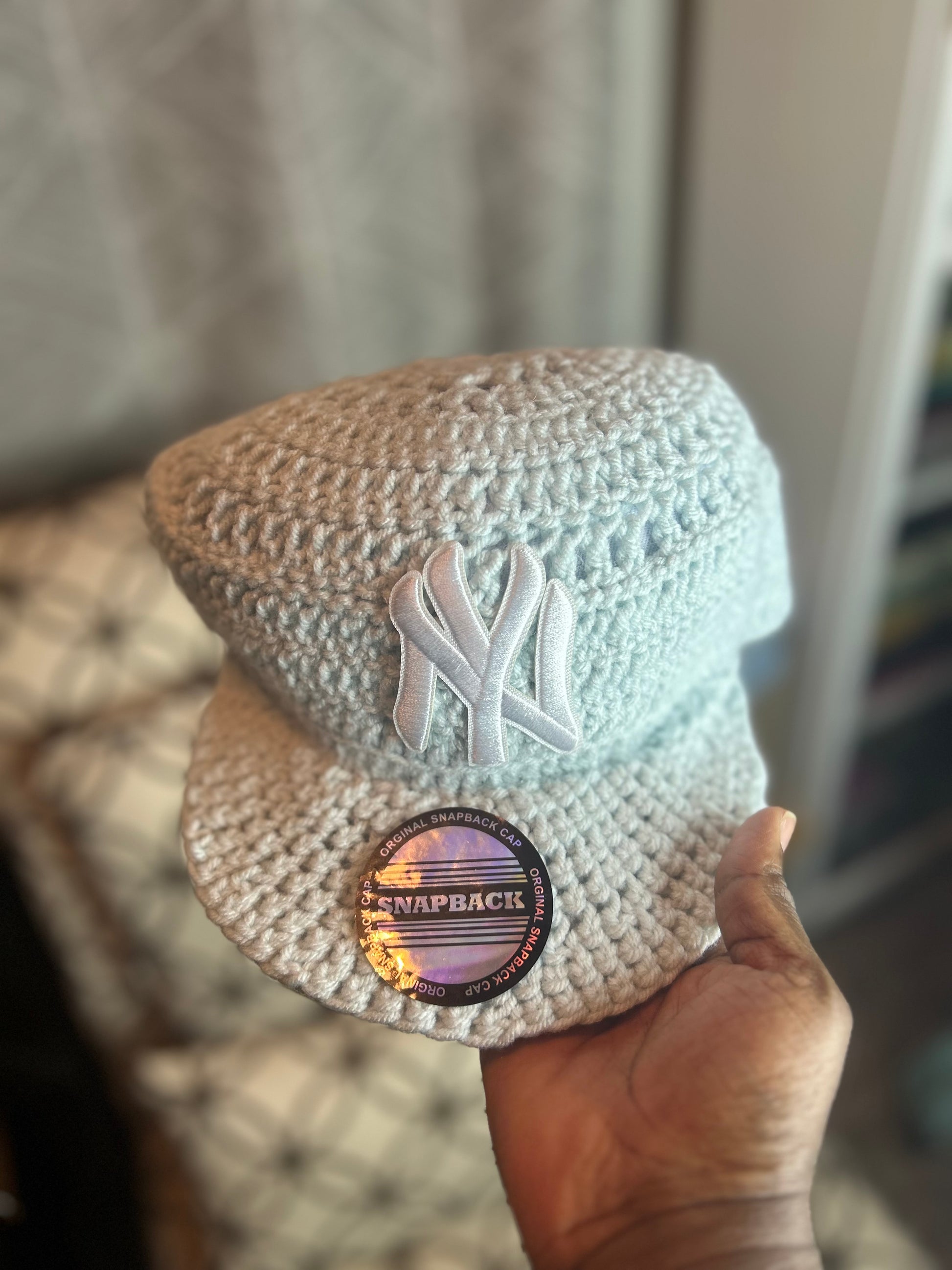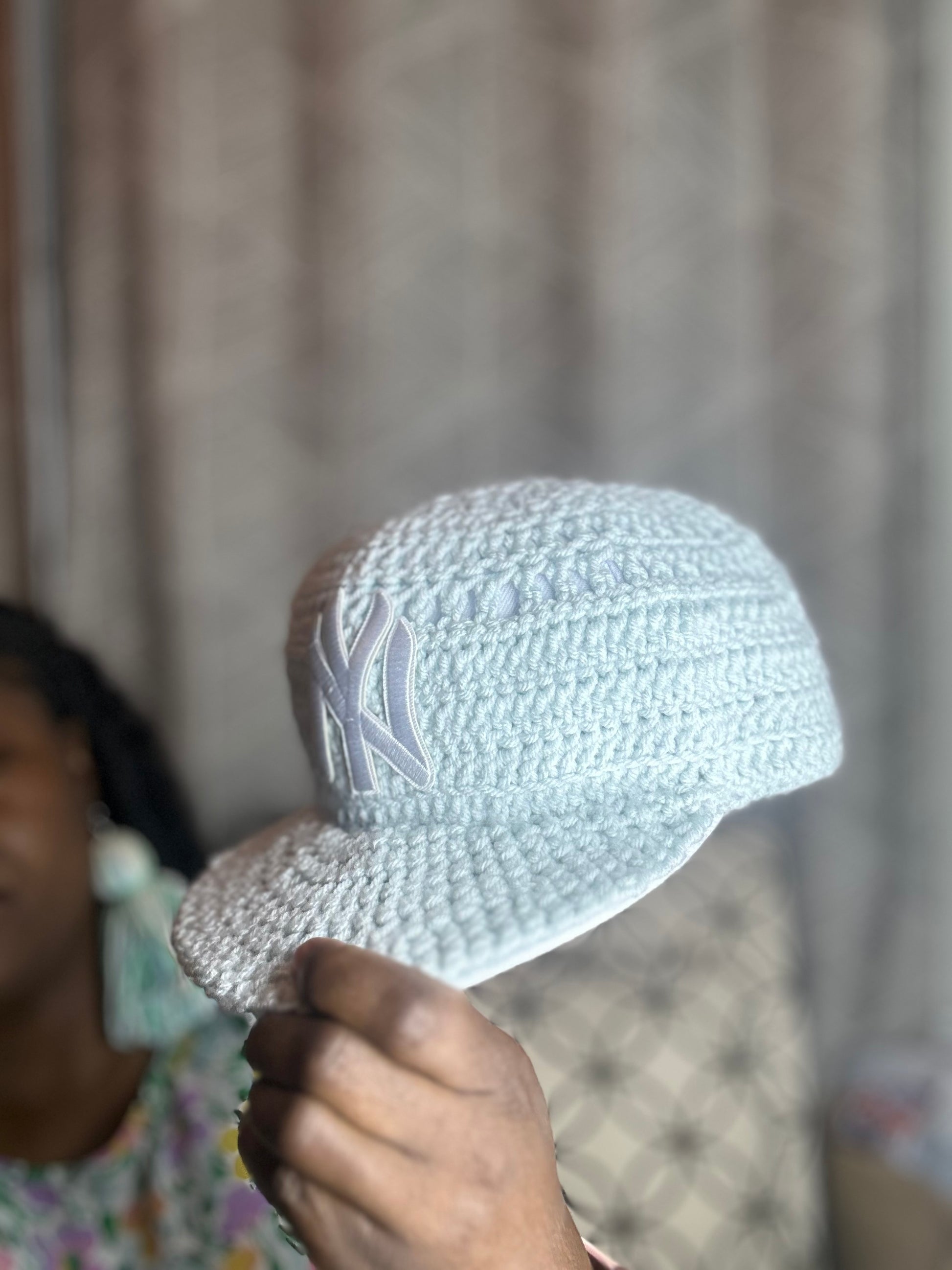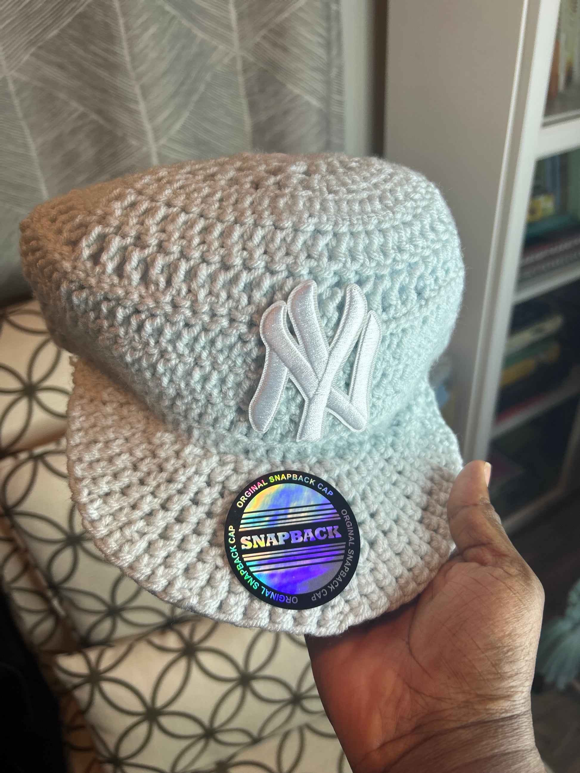 Customer crocheted SnapBack Fitted Hat, Baby Blue Acrylic wool yarn